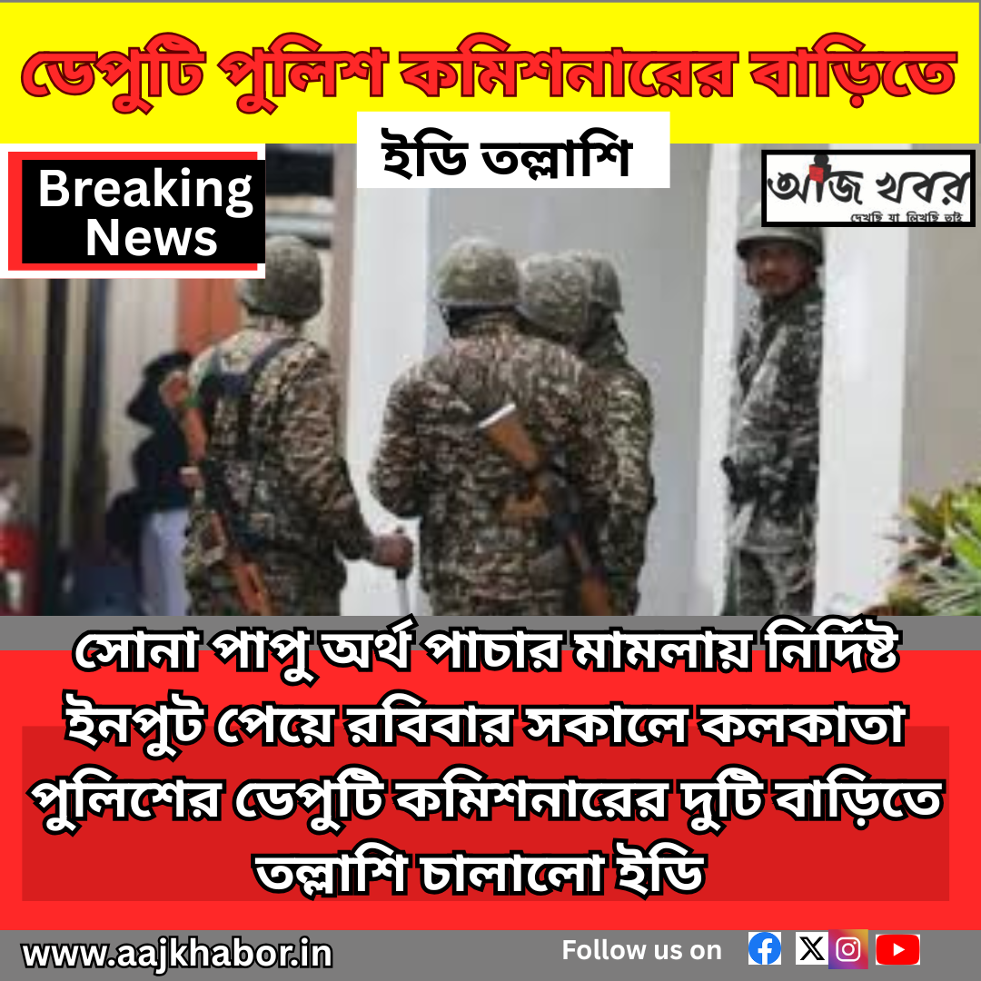 আজ খবর (বাংলা).[রাজ্য], কলকাতা,পশ্চিমবঙ্গ, ১৯/০৪/২০২৬ : সোনা পাপু মামলার তদন্তে নেমে এবার কলকাতা পুলিশের এক ডেপুটি কমিশনারের বাড়িতেই তল্লাশি চালালো এনফোর্সমেন্ট ডিরেক্টরেট (ইডি).
