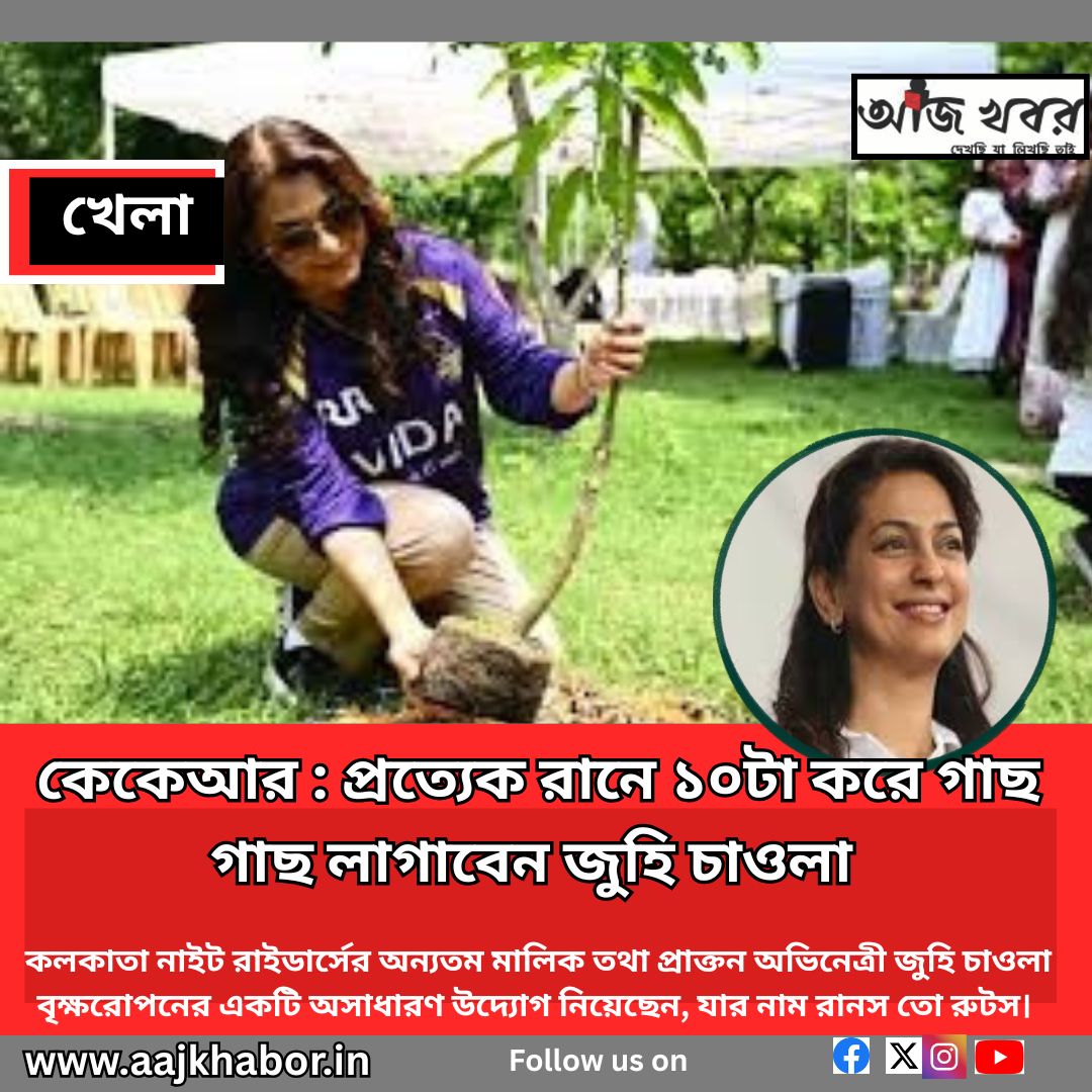 আজ খবর (বাংলা), [খেলা], কলকাতা, পশ্চিমবঙ্গ, ১৮/০৪/২০২৬ : কলকাতা নাইট রাইডার্সের অন্যতম মালিক তথা প্রাক্তন অভিনেত্রী জুহি চাওলা বৃক্ষরোপনের একটি অসাধারণ উদ্যোগ নিয়েছেন, যার নাম রানস তো রুটস।